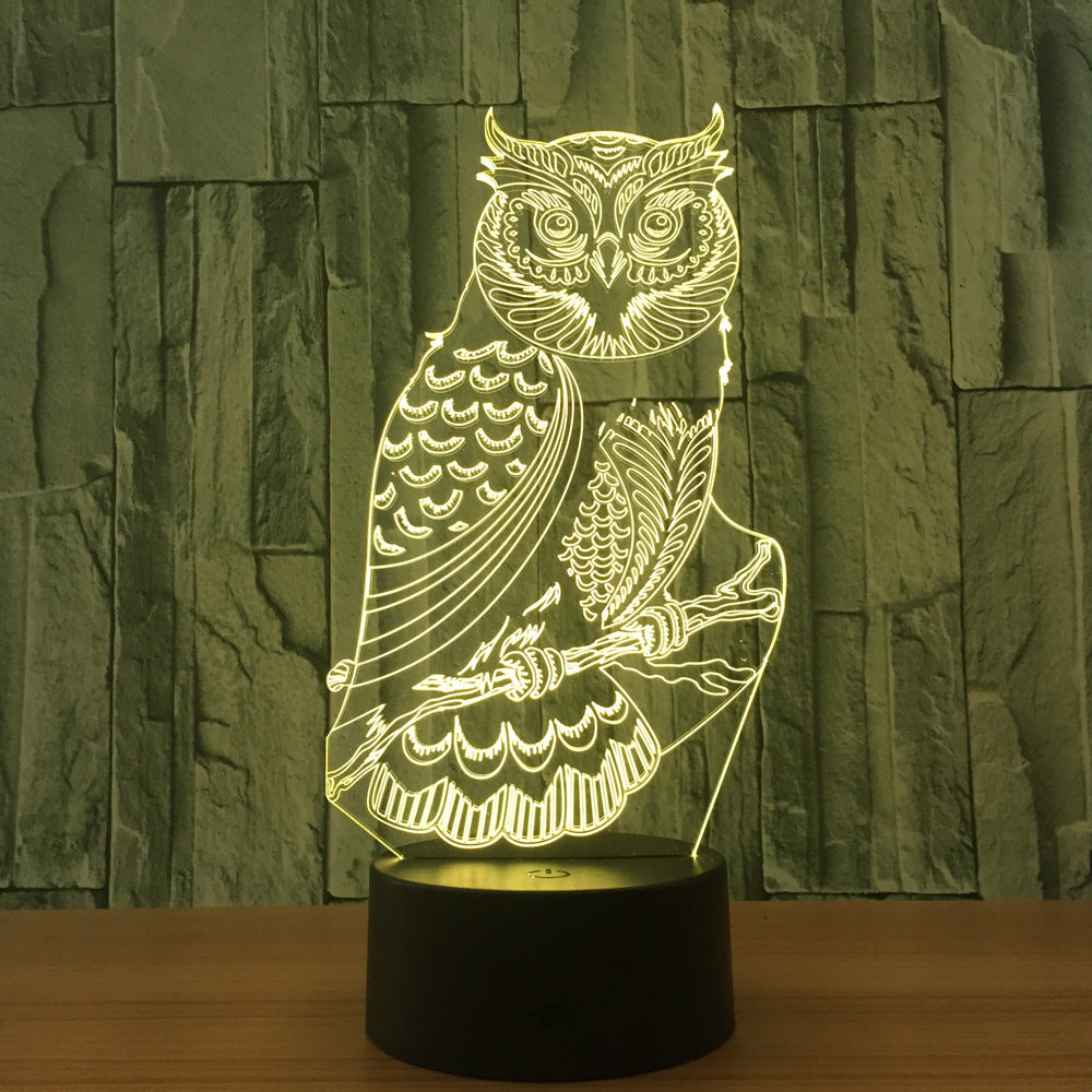Upplev den fascinerande effekten av vår 3D illusion LED-lampa i form av uggla