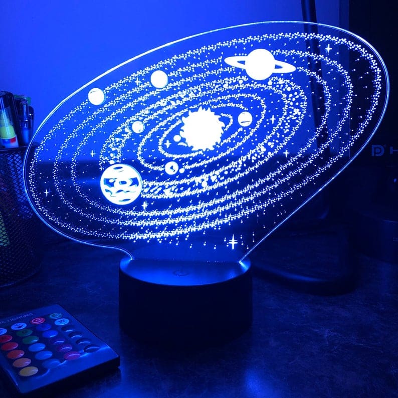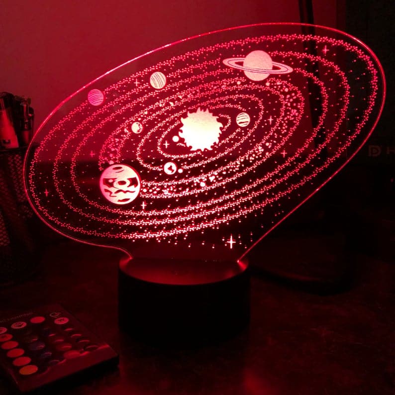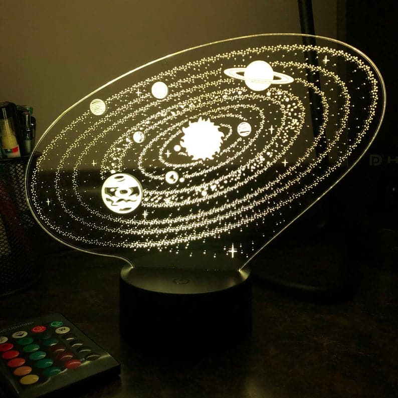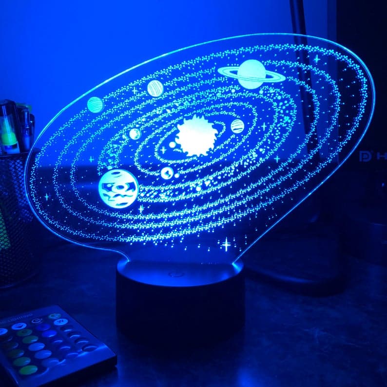 Ge ditt barn en unik present med denna 3D nattlampa med solsystemet för barn.
