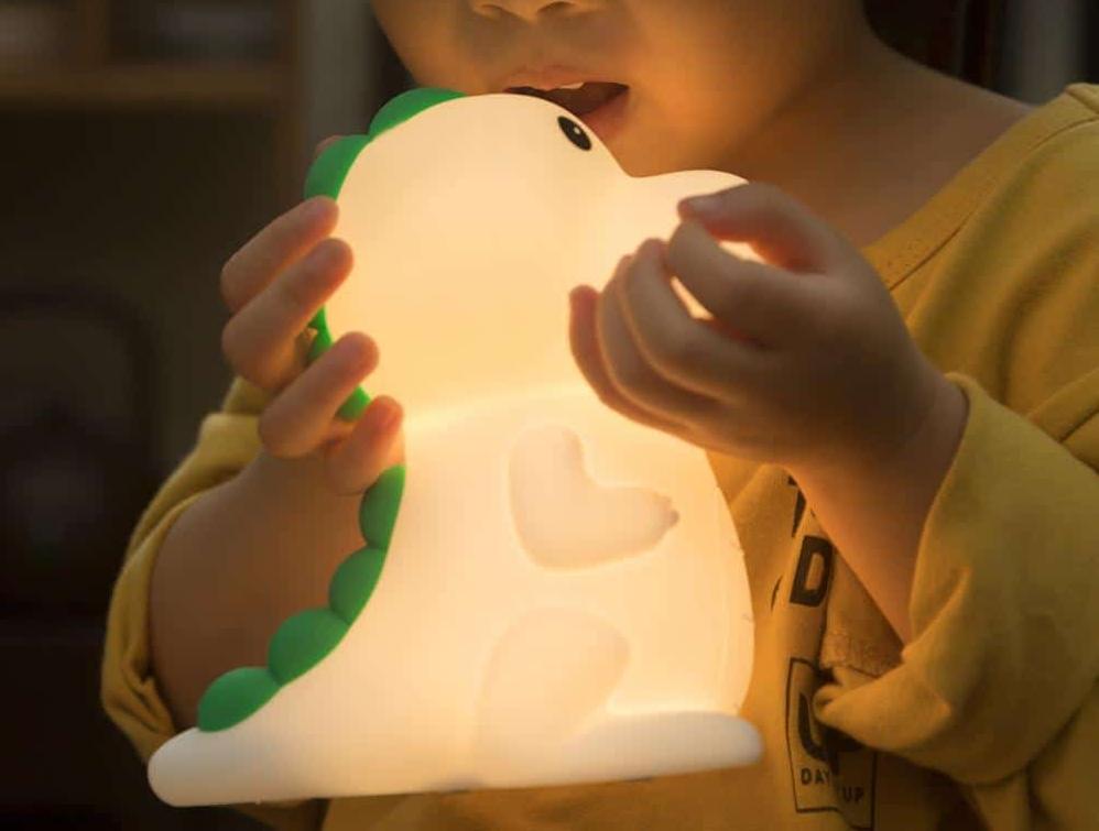 En trygg och lekfull färgskiftande dinosaurie nattlampa i silikon