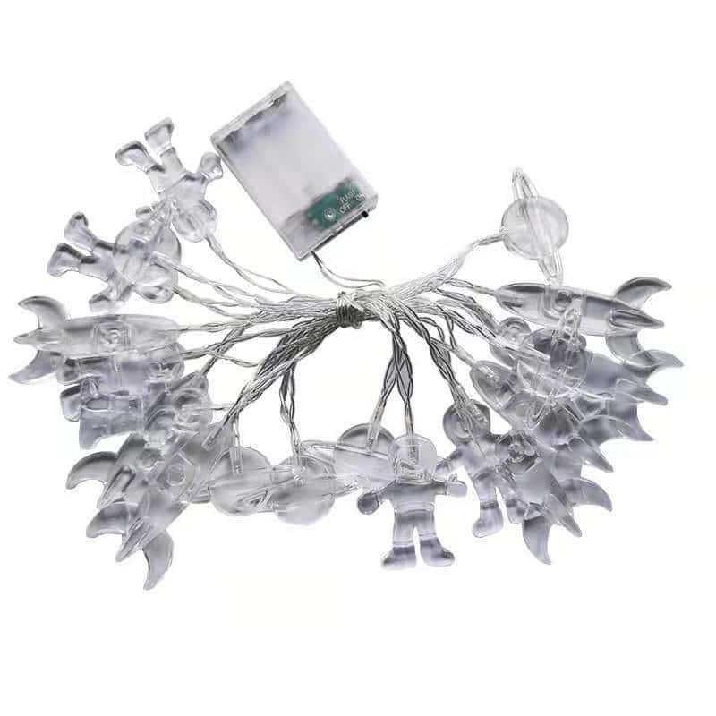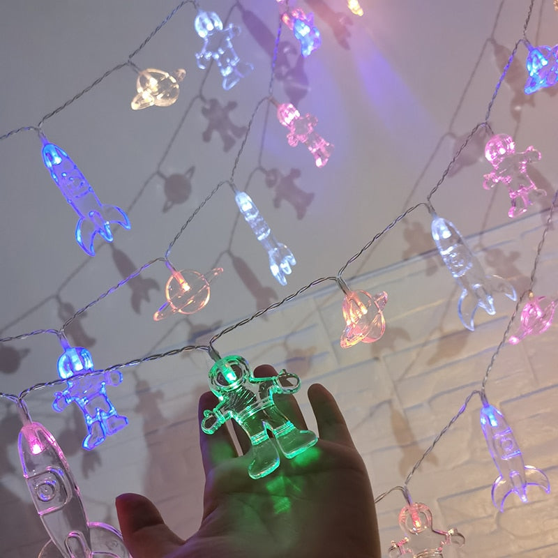Är ditt barn fascinerat av rymden, astronauter och raketer? Då är vår LED ljusslinga med rymdmotiv för barn den perfekta inredningsdetaljen! Denna charmiga ljusslinga med figurer som astronauter, raketer och planeter skapar en magisk och drömsk atmosfär i barnrummet. Perfekt för att stimulera fantasin och inspirera till nya upptäckter, samtidigt som den ger ett mjukt och behagligt sken.