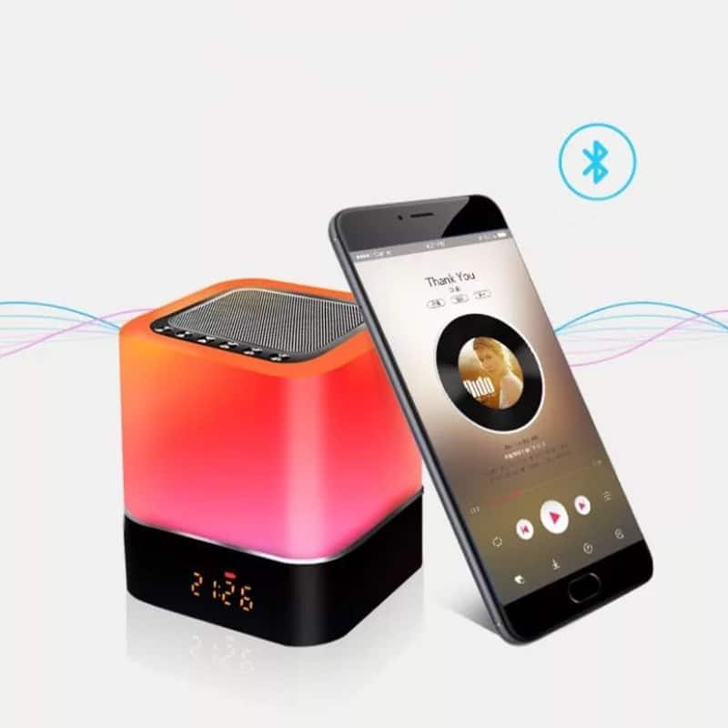 Nattlampa med Bluetooth-högtalare och klocka