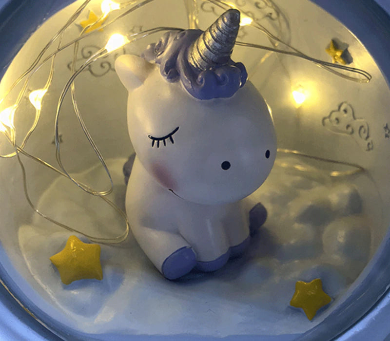 Låt ditt barn somna lugnt och tryggt med vår pastellfärgade enhörning nattlampa för flickrum. Det mjuka, varma skenet från LED-lamporna skapar en avslappnande och mysig stämning som är idealisk för godnattsagor och lugna stunder. De söta enhörningsfigurerna med slutna ögon inbjuder till lugn och ro, medan de små vingarna på lampans utsida förstärker den drömska känslan. Det är mer än bara en lampa; det är en liten värld av fantasi som väntar på att upptäckas varje kväll. Vår pastellfärgade enhörning nattlampa för flickrum är den perfekta presenten till alla små enhörningsälskare!