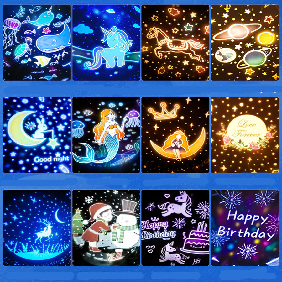 - Roterande stjärnprojektion: Skapar en dynamisk och magisk stjärnhimmel i taket och på väggarna.