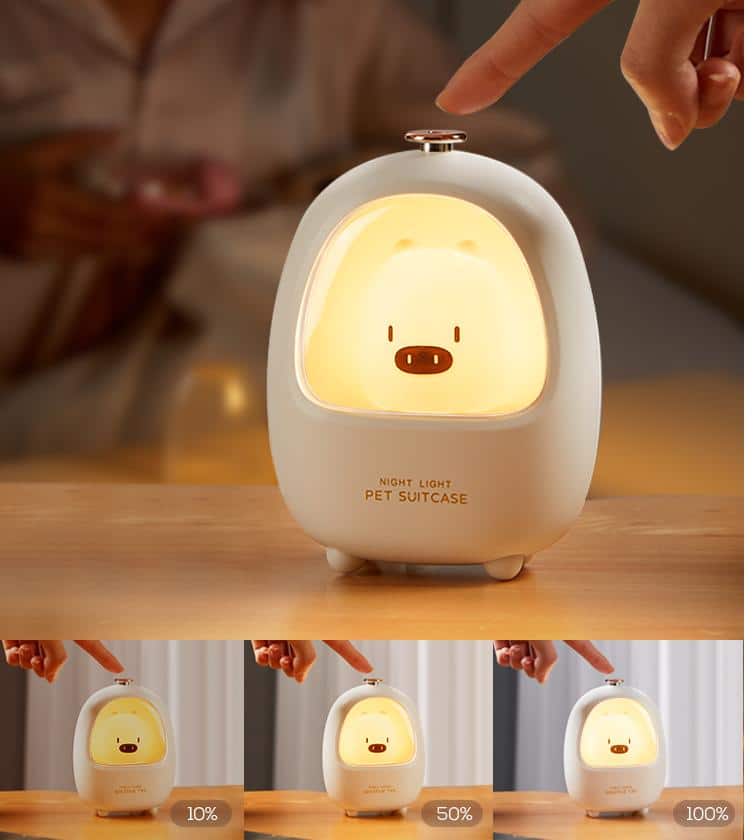 Låt oss presentera din nya favorit för barnrummet eller sovrummet – vår bedårande djur nattlampa med touch-funktion! Denna lilla pärla är inte bara en lampa, utan en riktig stämningshöjare som sprider ett mjukt och behagligt sken. Med sin charmiga design, som påminner om en liten, snäll gris inuti en resväska, blir den snabbt en älskad del av inredningen. Glöm krångliga knappar, tack vare touch-funktionen kan du enkelt tända, släcka och justera ljusstyrkan med bara en lätt beröring. Perfekt för nattliga besök eller bara för att skapa en mysig atmosfär när det är dags att varva ner.