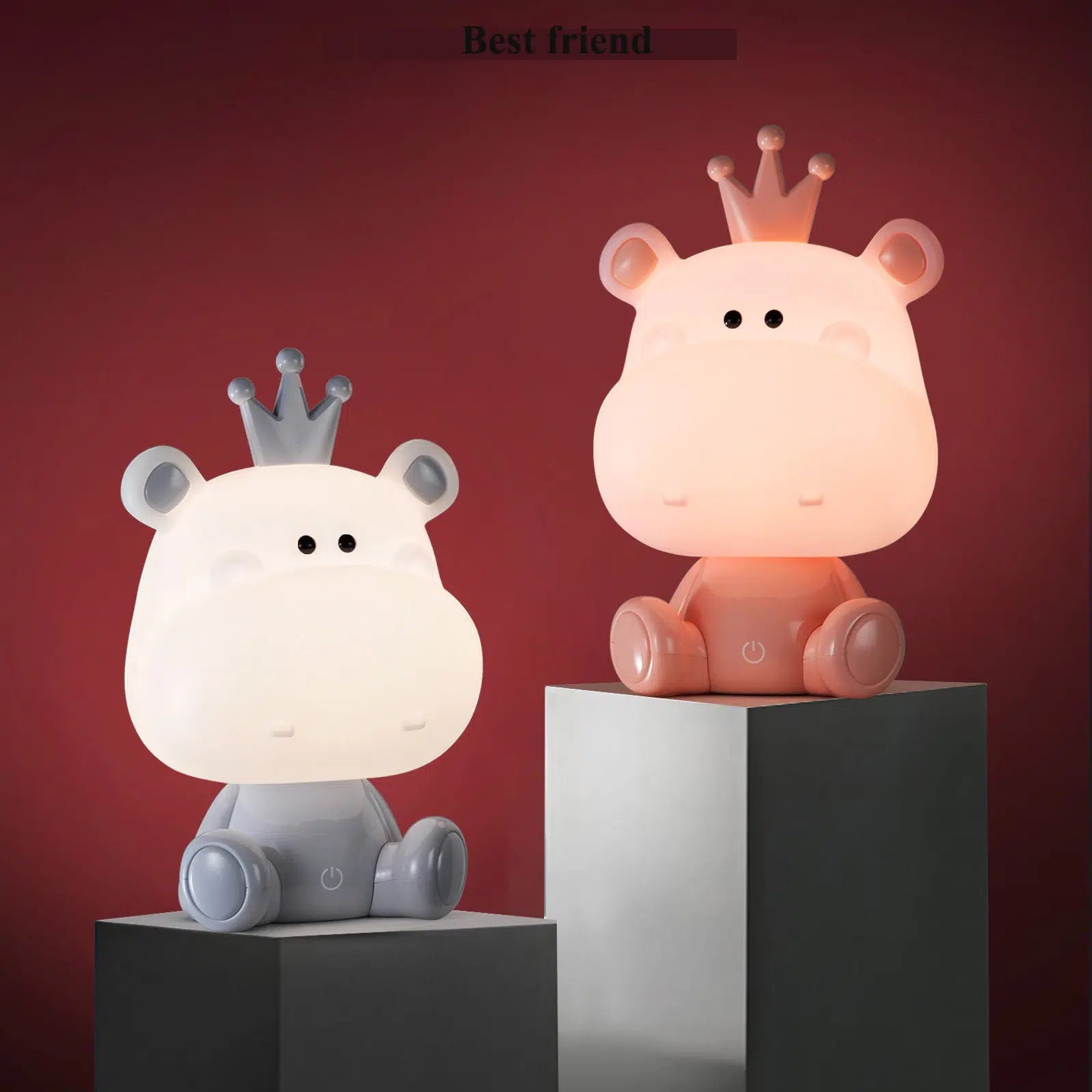 Förvandla barnens rum till en magisk plats med vår bedårande söta flodhäst nattlampa med touch! Denna charmiga lampa är inte bara en ljuskälla, utan en gullig kompis som sprider ett mjukt och lugnande sken. Perfekt för att lugna små äventyrare vid läggdags, eller som en mysig detalj under sagostunden. Med sin enkla touchfunktion kan även de minsta justera ljusstyrkan eller växla mellan olika ljuslägen med ett lätt tryck. Glöm krångliga knappar och sladdar – den här nattlampan är designad för att vara barnvänlig och intuitiv. Välj mellan en mjukt rosa eller en fräsch mintgrön flodhäst, båda med en söt krona på huvudet som ger dem en extra kunglig touch. Låt denna söta flodhäst nattlampa med touch bli en älskad del av din familjs kvällsrutiner och skapa en trygg och mysig atmosfär i barnrummet.