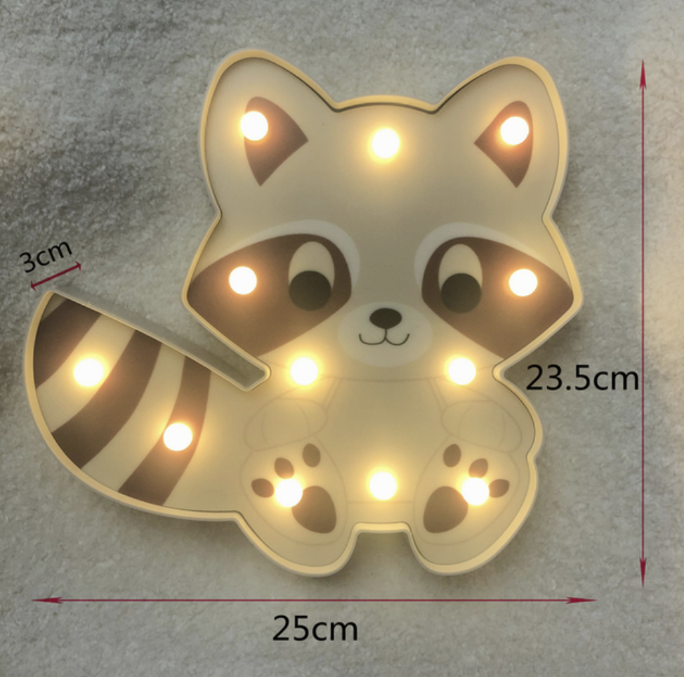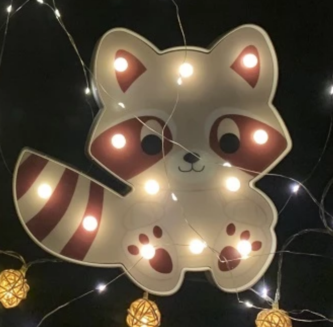 Ge barnrummet en mysig och lekfull atmosfär med vår charmiga tvättbjörn vägglampa! Denna söta lampa, formad som en vänlig tvättbjörn med sin karaktäristiska svans och maskerade ögon, sprider ett mjukt och behagligt LED-ljus som är perfekt för läggdags eller som en mysig nattlampa. Denna Tvättbjörn vägglampa med LED för barnrum är inte bara en ljuskälla, utan också en fin inredningsdetalj som stimulerar fantasin och skapar en ombonad känsla. Föreställ dig hur ditt barn somnar tryggt med sin lilla tvättbjörnsvän som vakar över dem.