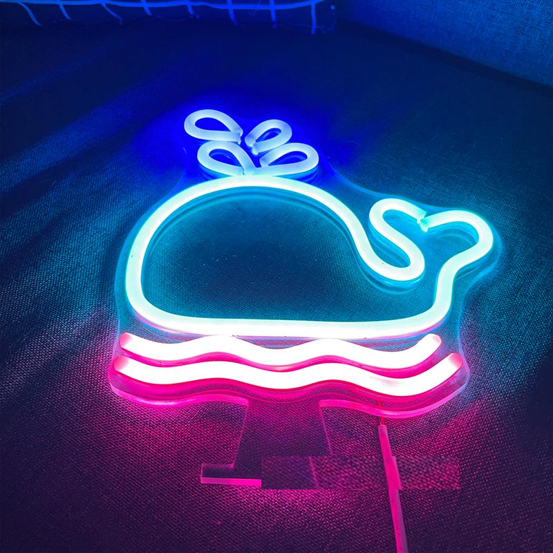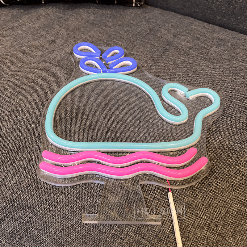 Denna fantastiska valformade LED neonlampa för vägg är skräddarsydd för att addera karaktär och personlighet till din inredning. Den kombinerar modern LED-teknik med en tidlös och älskvärd design. Med sina livfulla blå och rosa nyanser skapar den en varm och inbjudande glöd som förvandlar varje utrymme. Till skillnad från traditionella neonljus är denna LED-lampa energieffektiv och säker att använda, vilket gör den till ett utmärkt val för alla som söker både stil och funktion. Det mjuka ljuset är perfekt för att skapa en mysig kvällsatmosfär eller som ett roligt nattljus.
